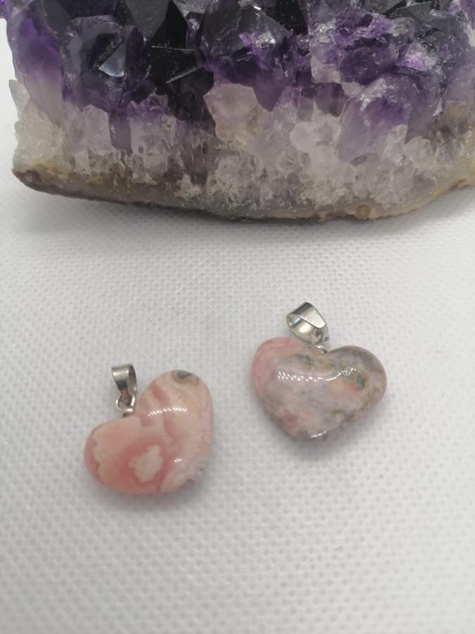 Dije corazón en piedra natural rodocrosita con cordón negro.