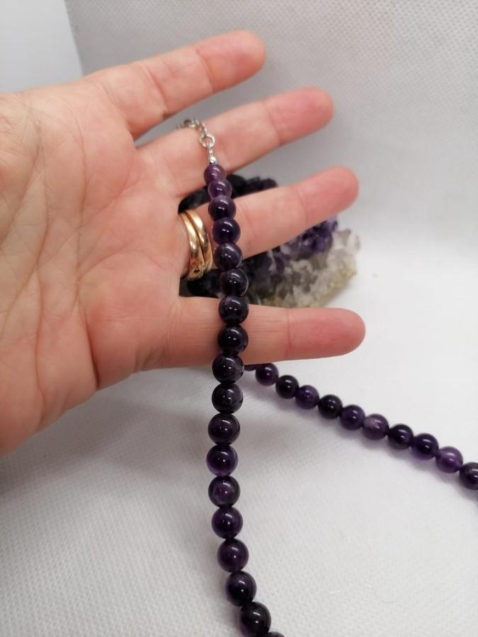 Es ideal para aliviar dolores de cabeza o migraña, para tratar problemas pulmonares o respiratorios y para problemas de la piel. Combate el insomnio y aporta un sueño reparador colocándola debajo de la almohada. Limpia el aura y transmuta le energía negativa, además de estimular los chakras de la garganta y coronilla. Inspira tranquilidad y relaja las emociones. Ayuda en situaciones de pérdida de un familiar. Los efectos relajantes de la amatista ayudan en la eliminación del estrés emocional y en los estados de menopausia. Crea armonía y tranquiliza en los momentos de ansiedad e irritabilidad.