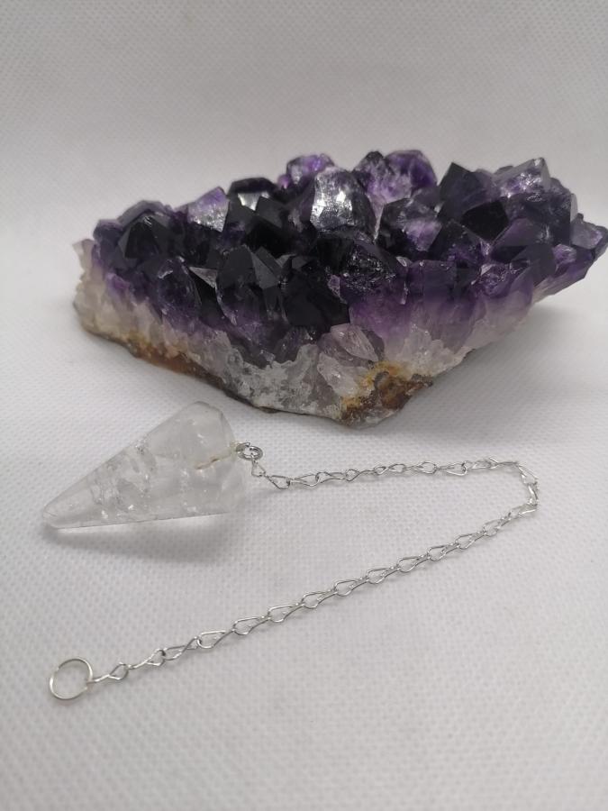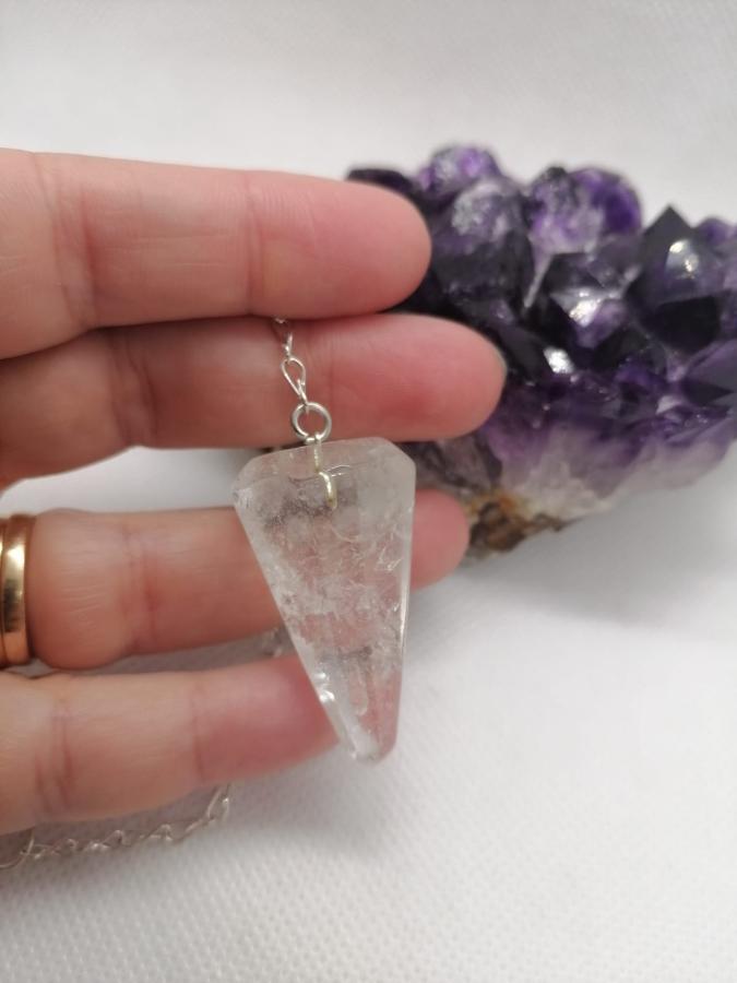 Péndulo en piedra natural cuarzo cristal con cadena.