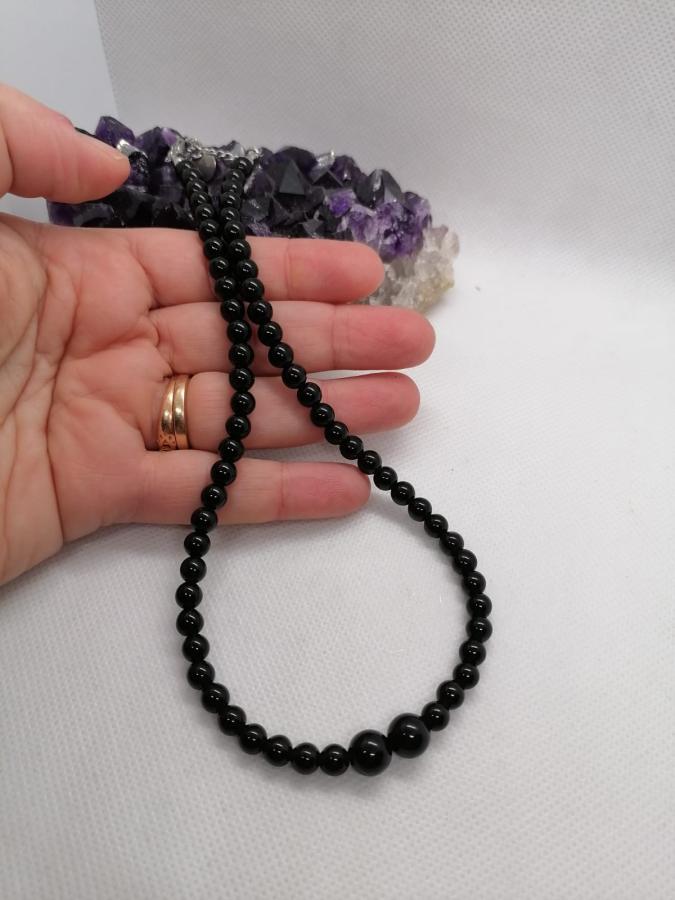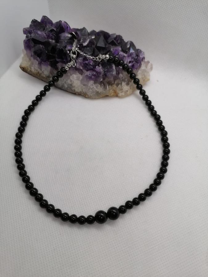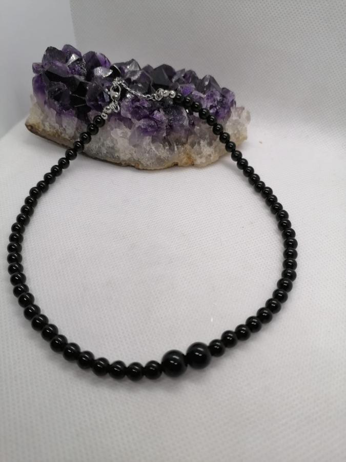 Gargantilla en piedra natural obsidiana en bolita 6mm.