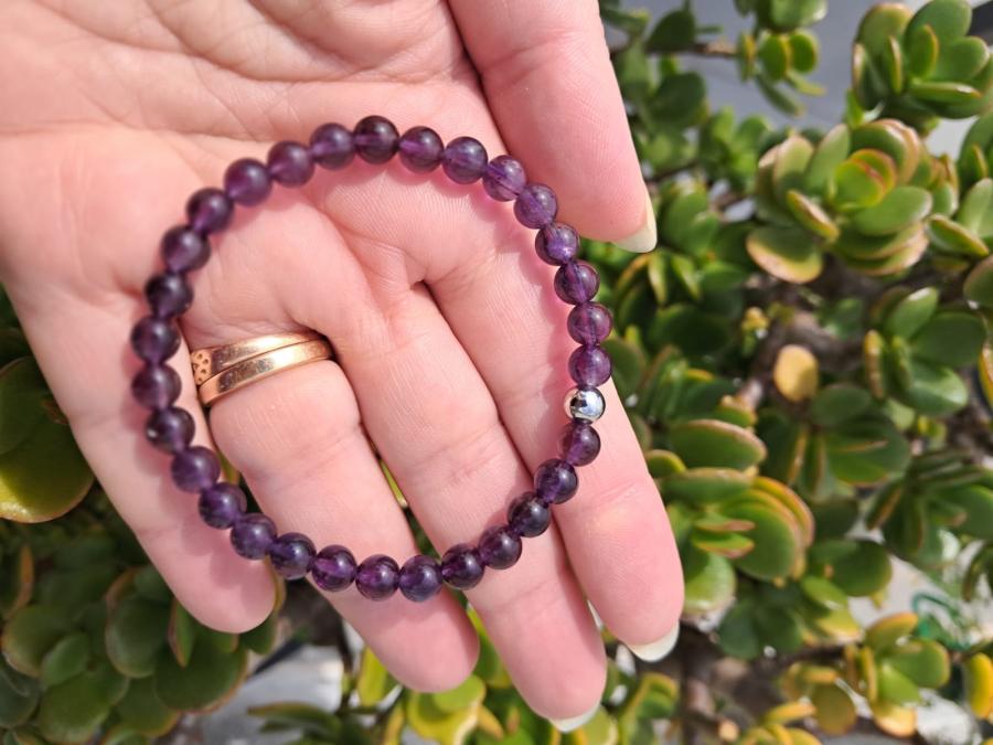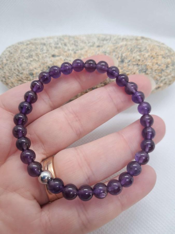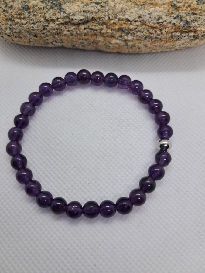 Pulsera en amatista en piedras naturales en bolita de 6 mm.