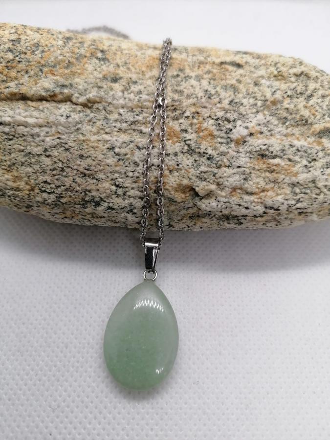 Dije gota en piedra natural cuarzo verde con cadena fina de acero.