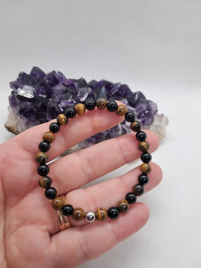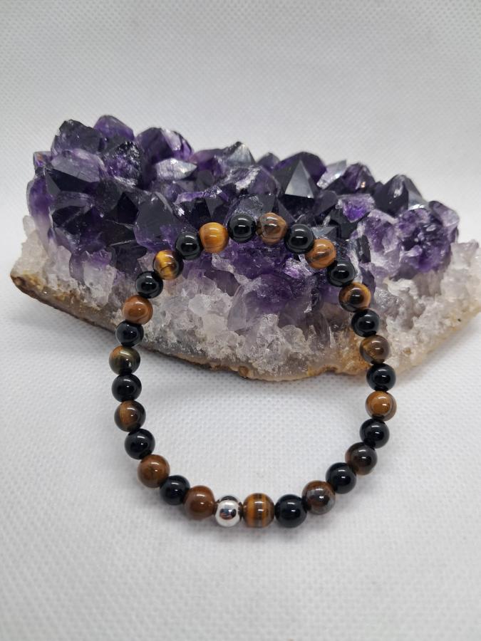 Al llevar esta pulsera de ojo de tigre con obsidiana negra natural te convertirás en un ser protegido por el universo de las energías. Lograrás ver más allá de las circunstancias para buscar soluciones además de evitar ciertos bloqueos mentales gracias a la piedra de ojo de tigre.