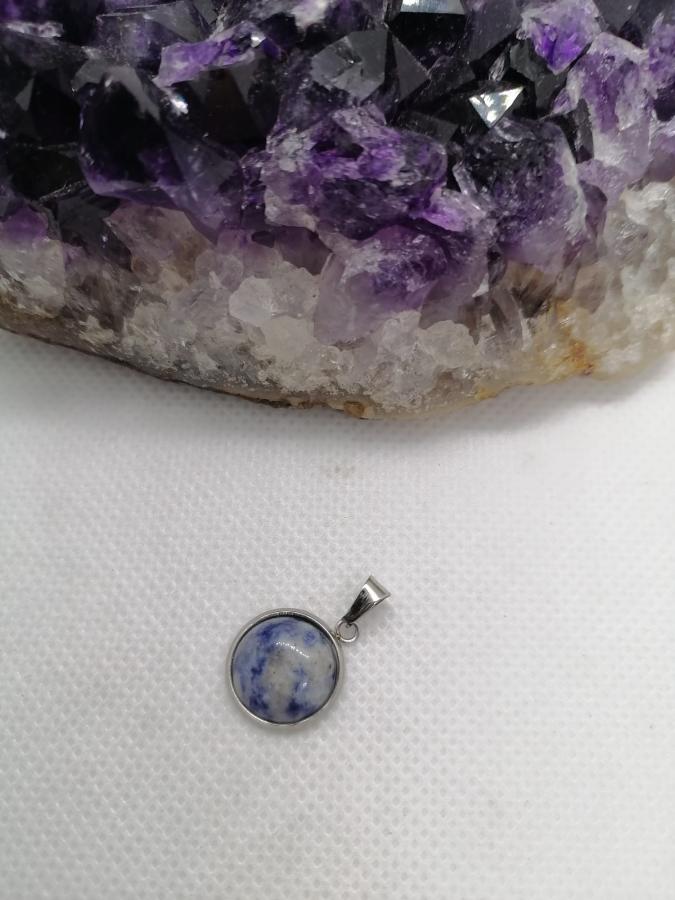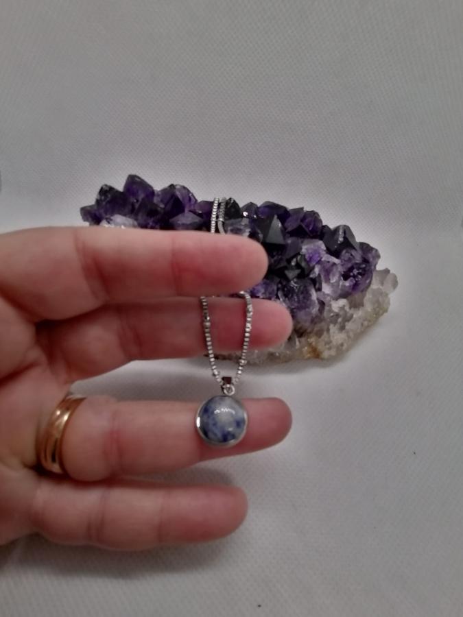 Dije en piedra natural cuarzo azul con cadena gruesa de acero.