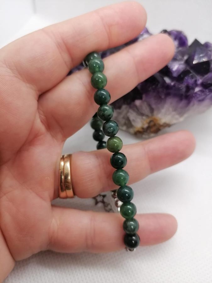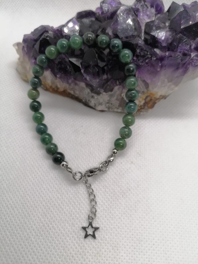 Pulsera en piedra natural en ágata musgo bolita 6mm con cierre de acero.