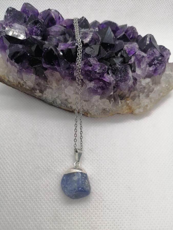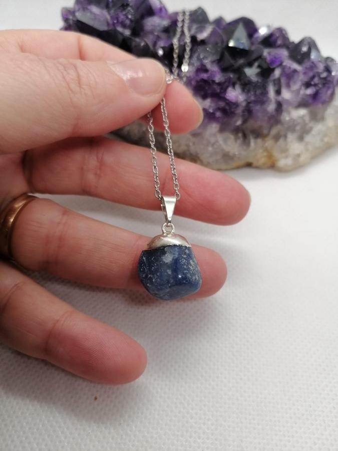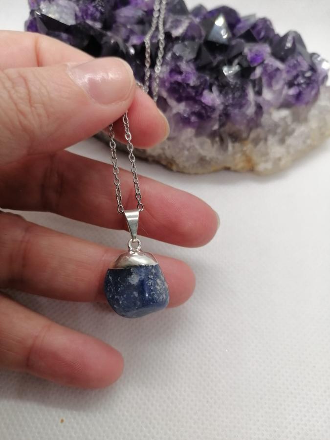 Dije en piedra natural cuarzo azul con cadena fina de acero.