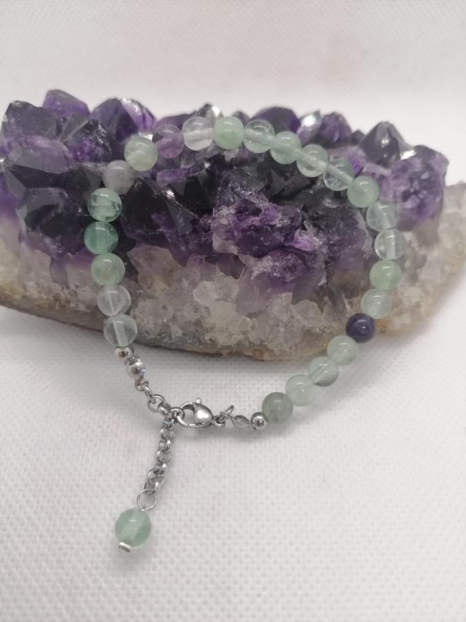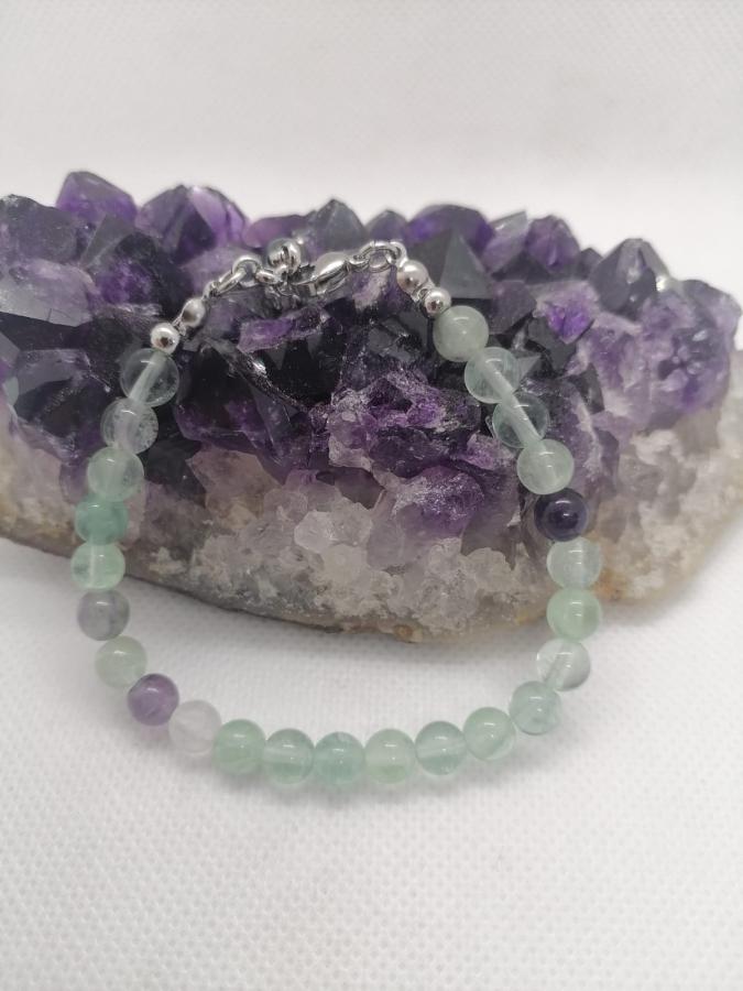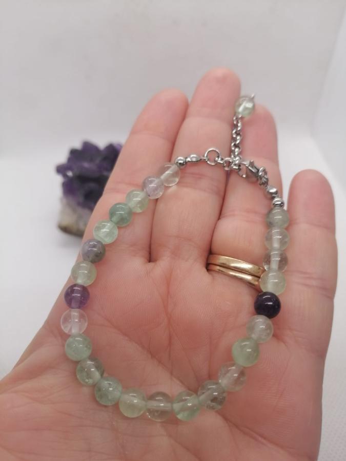 Pulsera en piedra natural fluorita en bolita de 6 mm con cierre quirúrgico