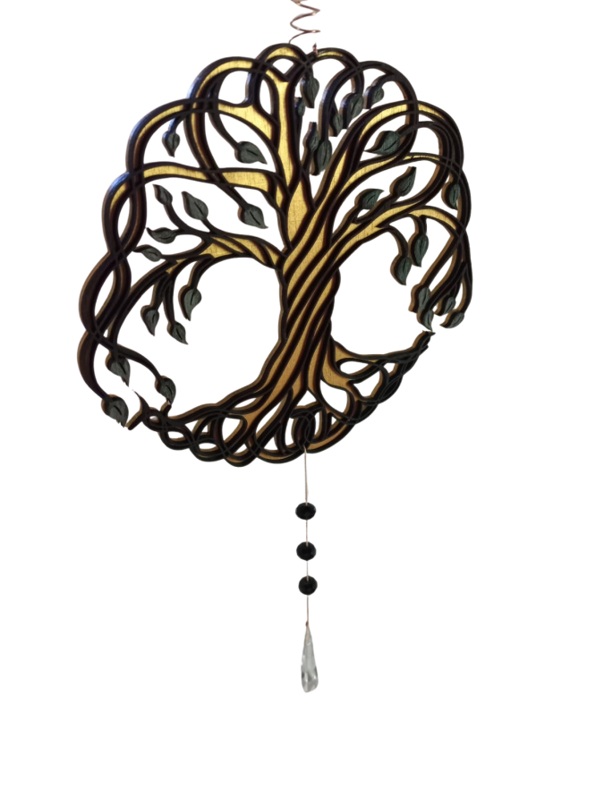 Novedoso diseño de colgante árbol en 2 capas, con artesanía y atrapasol. 20cm diámetro
