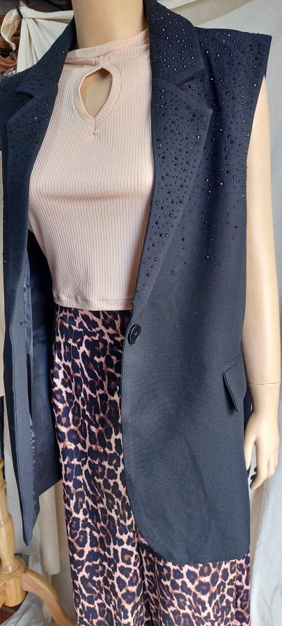 El chaleco sastrero con brillos tiene ese toque de elegancia que buscas para tu outfit.