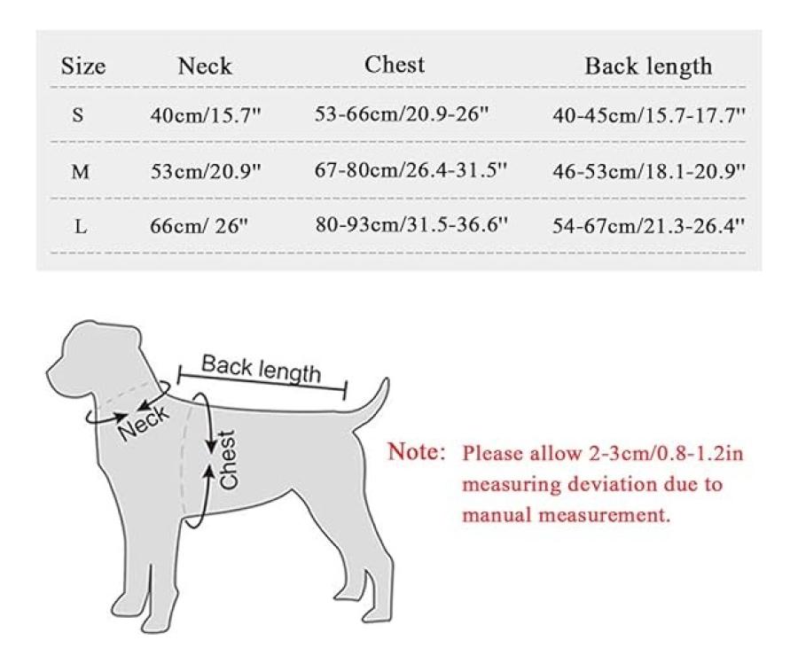 Talla: verificar según peso y contorno del perro (consultar guía de tallas antes de comprar).