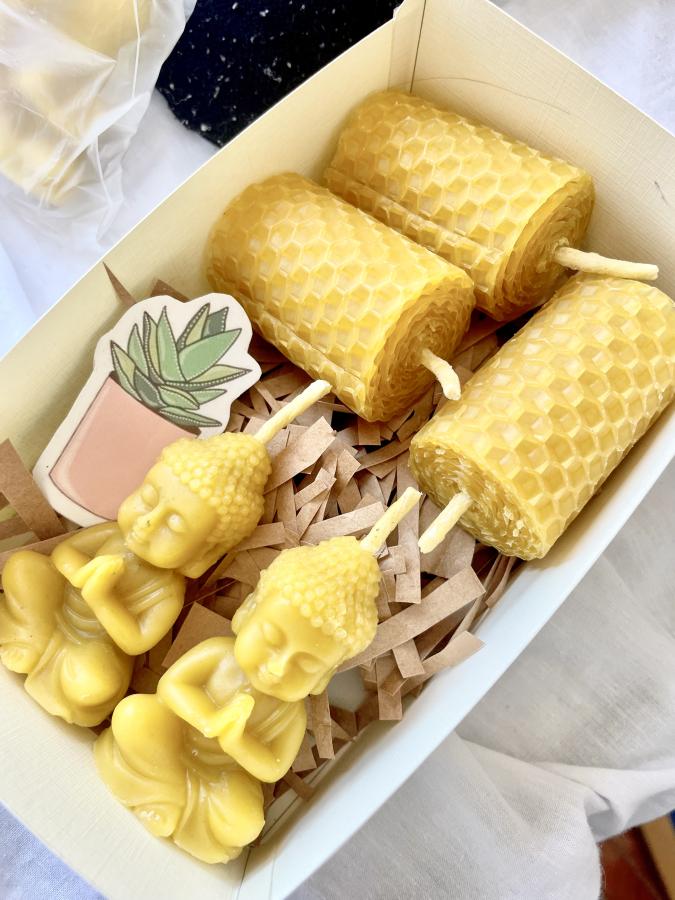 Hechas con buena vibra y dedicación, nuestras velas de miel crean ambientes acogedores, relajantes y llenos de luz. Perfectas para regalar o para disfrutar en tu día a día, son detalles que despiertan los sentidos y acompañan tus momentos más especiales. ¡Dale un toque dulce y luminoso a tu rutina!