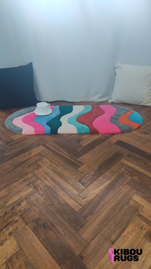 Alfombra hecha a mano con la tecnica tufting. Perfecta para decorar tus espacios y darle ese toque a tu hogar.
