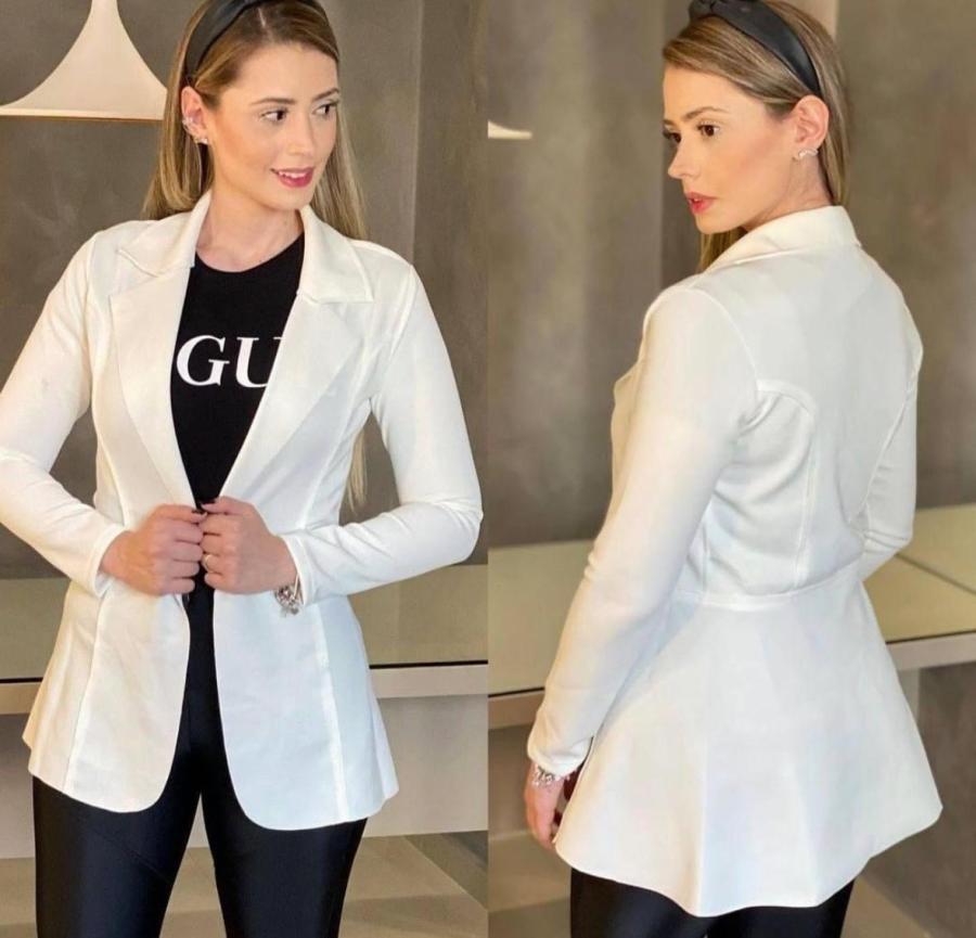 Blazer largo confeccionado en tela tipo neopreno, con excelente estructura y caída. Su diseño moderno y elegante estiliza la figura, brindando comodidad y versatilidad para usar tanto de día como de noche.