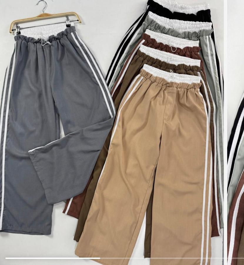 Pantalón de dama confeccionado en tela gabardina, resistente y confortable, ideal para el uso diario. Presenta detalles blancos en el elástico de la cintura y líneas blancas a lo largo de los costados de las piernas, que aportan un estilo moderno y deportivo sin perder elegancia.