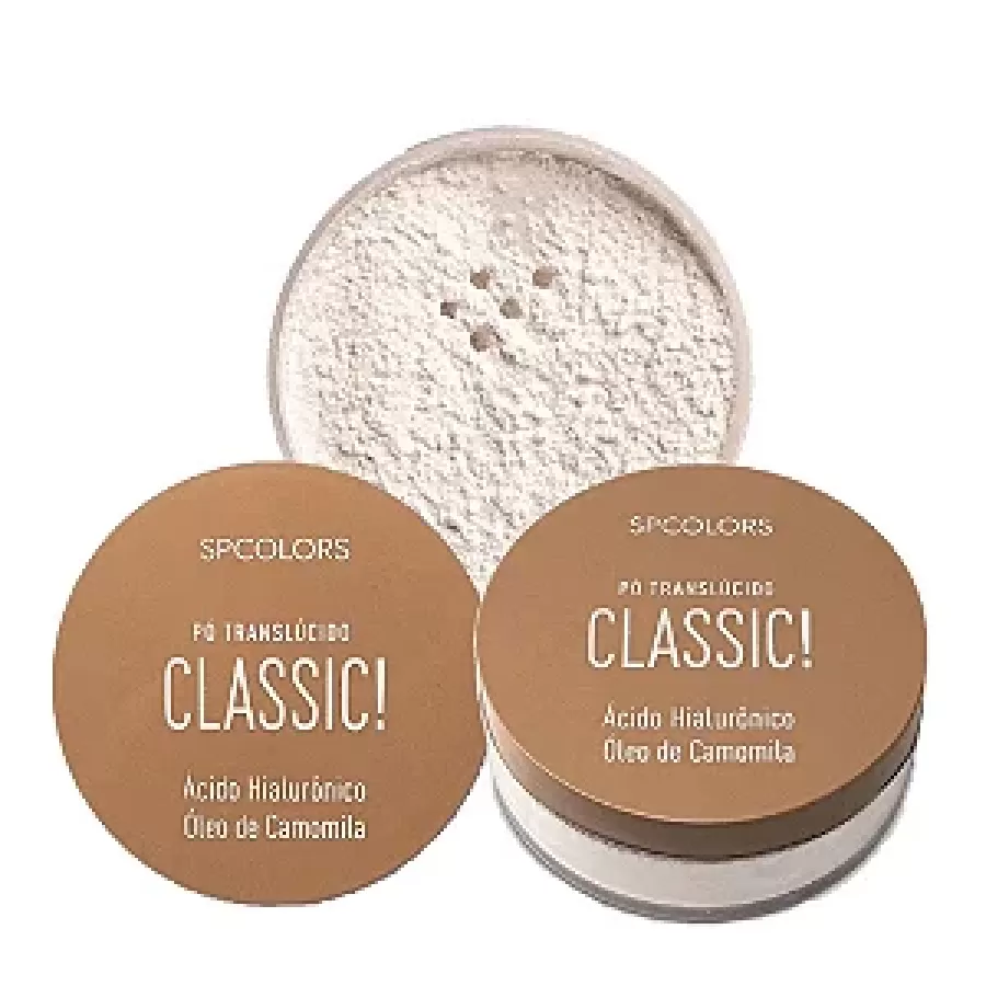El Polvo Translúcido Classic! de SP Colors es el aliado ideal para dejar la piel con un acabado impecable, matificado y sin brillo excesivo. Su fórmula ligera contiene Ácido Hialurónico y Aceite de Camomila, dos ingredientes que ayudan a mantener la piel hidratada, suave y con una sensación confortable durante todo el día.