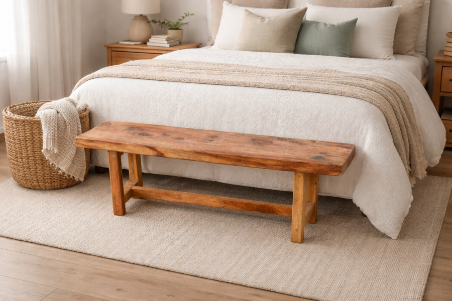 Gracias a sus medidas, es ideal para utilizar como banco a los pies de la cama, asiento auxiliar, apoyo decorativo o en livings, recibidores y dormitorios. Un mueble funcional, resistente y pensado para acompañar el uso diario durante toda la vida.