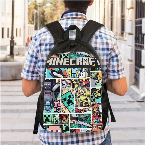 La mochila escolar Minecraft 13L 🎮👾 es el set ideal para los fans del juego más popular. Su diseño en color negro con estampado oficial de Minecraft 💚 destaca por estilo y originalidad.