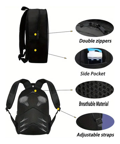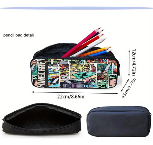 Incluye lonchera 🍱 y cartuchera ✏️ a juego, ofreciendo practicidad y organización en cada día escolar. Con capacidad de 13 litros, es perfecta para cuadernos 📚 y accesorios, sin perder comodidad gracias a su tamaño compacto. Fabricada en materiales resistentes 💪, combina durabilidad, estilo gamer y funcionalidad en un solo producto ⭐.