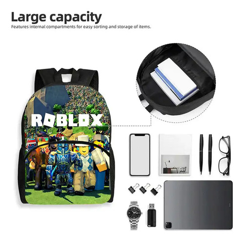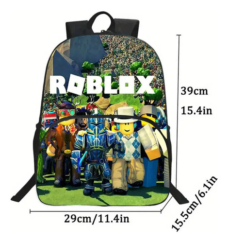 La mochila escolar Roblox 17L 🎮👾 es perfecta para los fans del mundo gamer. Con diseño en color negro y personajes icónicos de Roblox, combina estilo y practicidad en un solo producto.