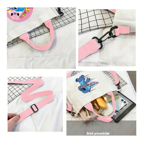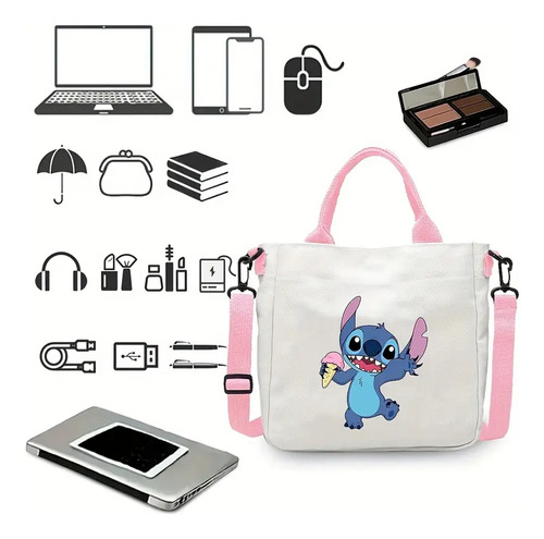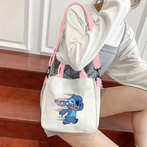 Bolso De Mano De Lona - Diseño Stitch Rosa Lisa Rosa