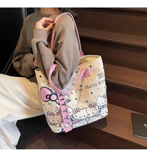 Llená tus días de estilo y ternura con el bolso de moda Hello Kitty 🎀💖. Su diseño en tonos natural y rosa 🌸 combina diversión y modernidad, ideal para un look juvenil y original.