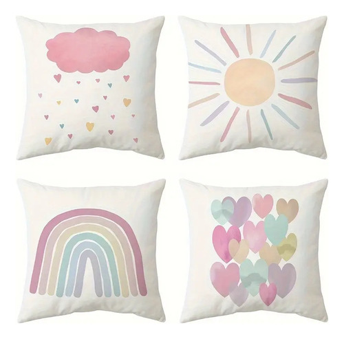 Funda Para Almohadón 45x45 Cm Animales Blanco Arcoíris