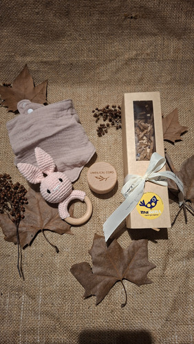El Set Baby Box 2 Majuna 👶✨ es el regalo perfecto para los recién nacidos. Contiene un babero de muselina suave 🌸, un sonajero divertido que estimula los sentidos del bebé y un práctico porta ombligo, combinando funcionalidad y ternura en un solo set.