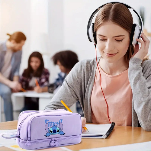 Cartuchera Stitch Compacta Y Funcional Morado Stitch 3