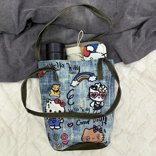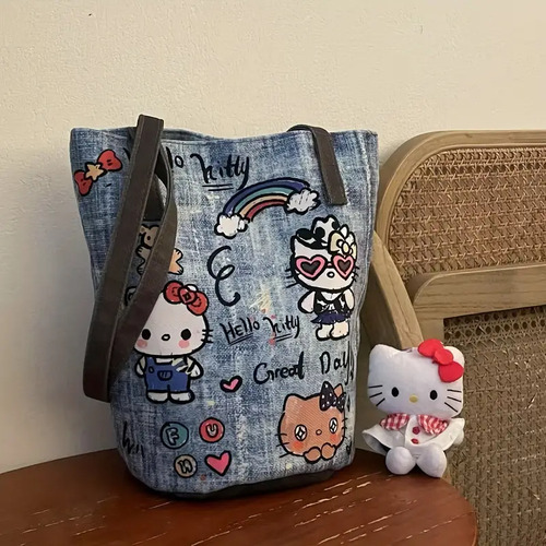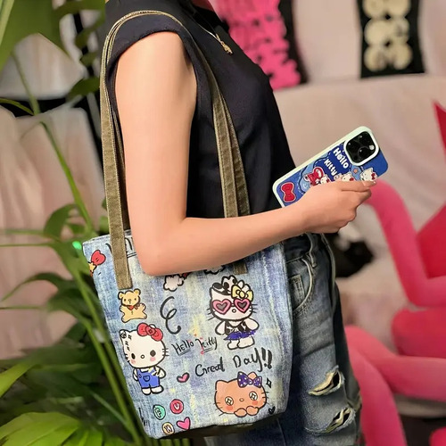 El bolso de mano Hello Kitty 🎀 combina elegancia, estilo y practicidad en un diseño único. Con tonos azul acero, níquel y verde musgo 💚, aporta un look moderno y encantador, ideal para cualquier ocasión.