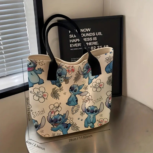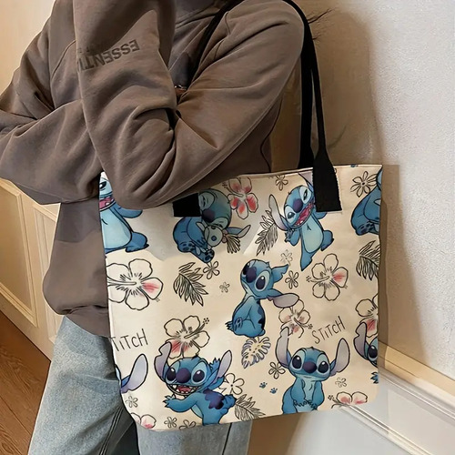 El bolso de hombro Stitch 💙 combina funcionalidad y estilo divertido. Confeccionado en poliéster simil lino negro 🖤, presenta un diseño con los adorables personajes de Stitch 🐾, ideal para sumar un toque tierno y original a cualquier look.