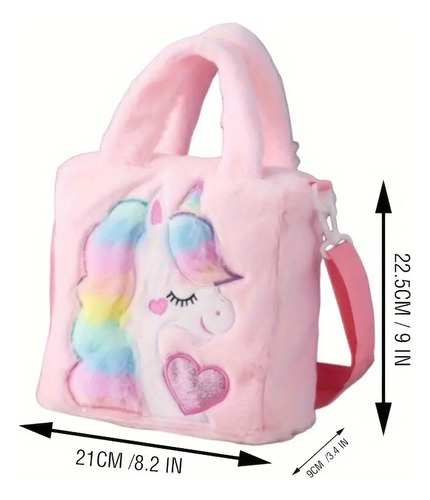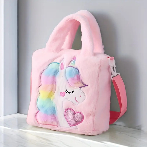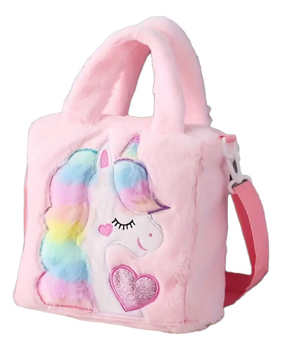 La Cartera Unicornio Rosa de Terciopelo con Asas Rosa Claro es el accesorio perfecto para las pequeñas amantes de la fantasía y la magia.