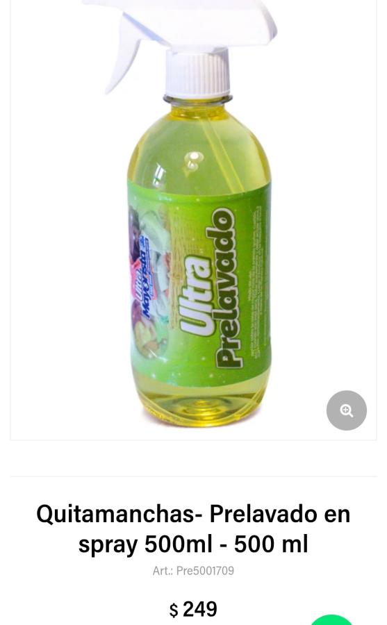 El PRELAVADO QUITAMANCHAS 500ML es la solución perfecta para mantener tus superficies limpias y sin manchas. Su práctico gatillo facilita la aplicación, permitiéndote atacar las manchas más difíciles con precisión.