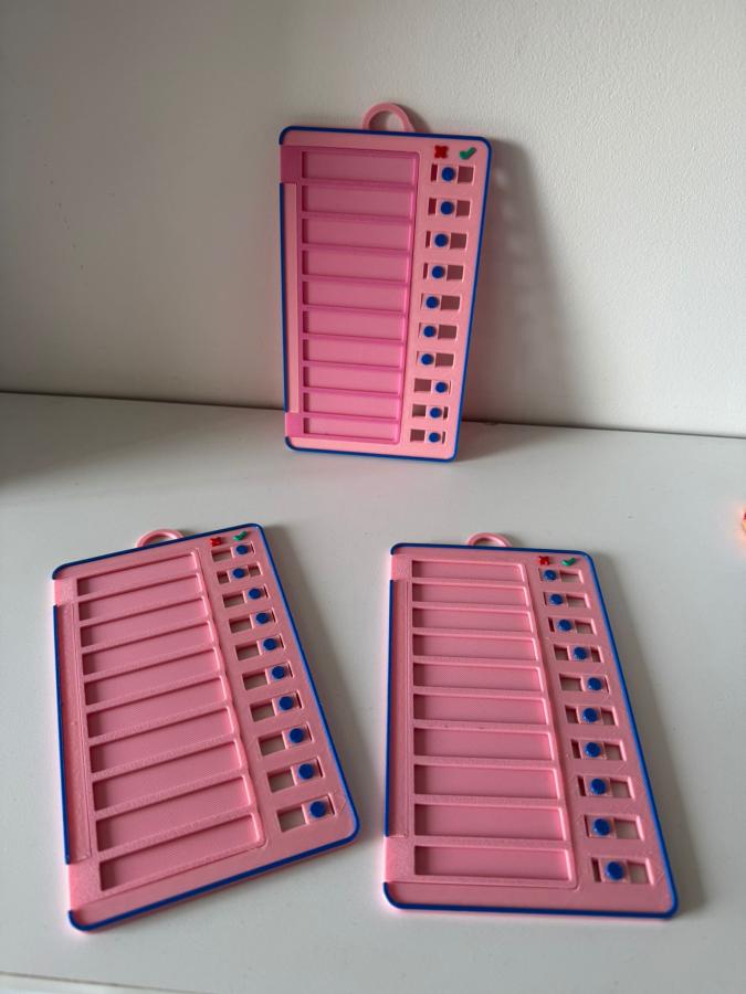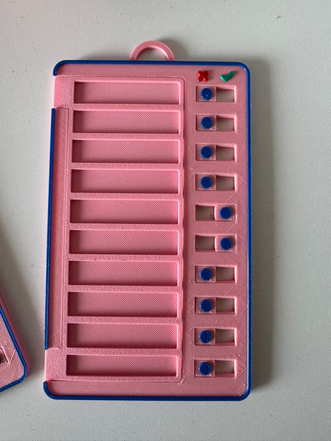 Con botón para marcar si la actividad fue realizada. Ayuda a anticipar y organizar la jornada; tanto escolar como en casa.