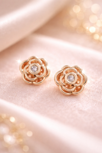 ARETES FLOR DORADA CON CENTRO DE PIEDRA BLANCA
