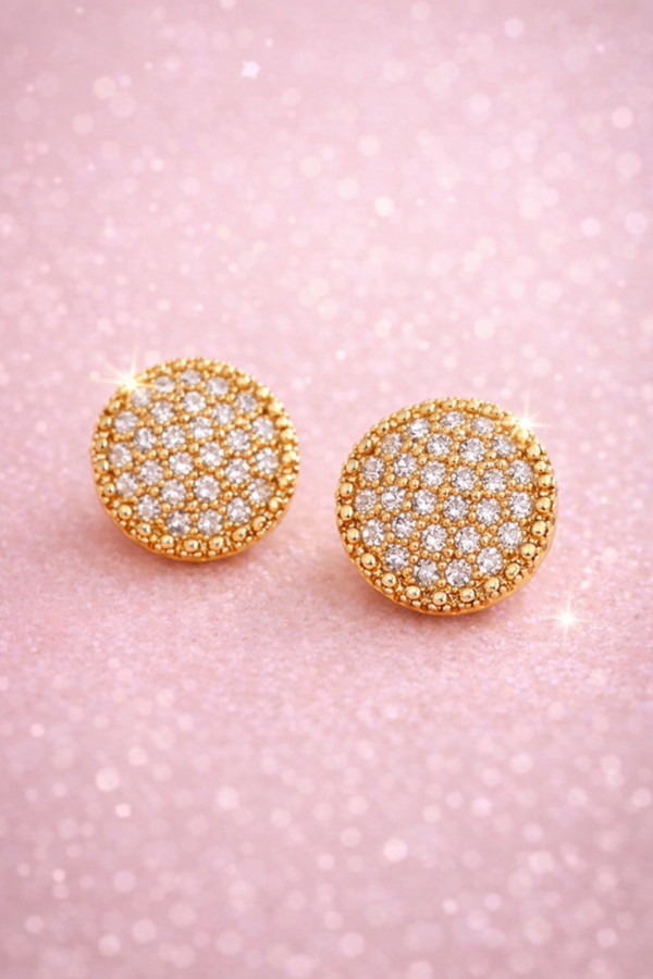 Aretes redondos con piedrecitas blancas están diseñados para realzar cualquier look. S diseño elegante y delicado los hace perfectos tanto para el día como para la noche. Son livianos cómodos y combinan fácilmente con diferentes outfits