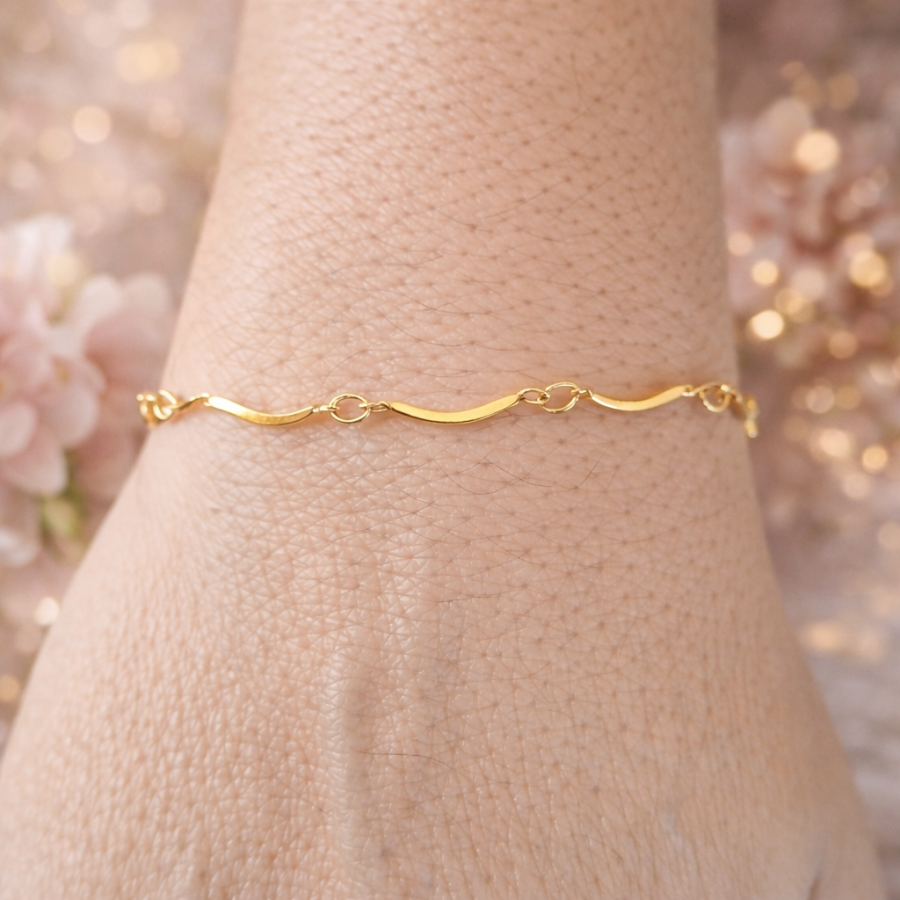 MANILLA CON ESLABONES FINOS Y DETALLES ONDULADOS QUE APORTAN UN ESTILO MODERNO Y SUTIL.LIVIANA COMODA Y FACIL DE COMBINAR CON OTRAS JOYAS.