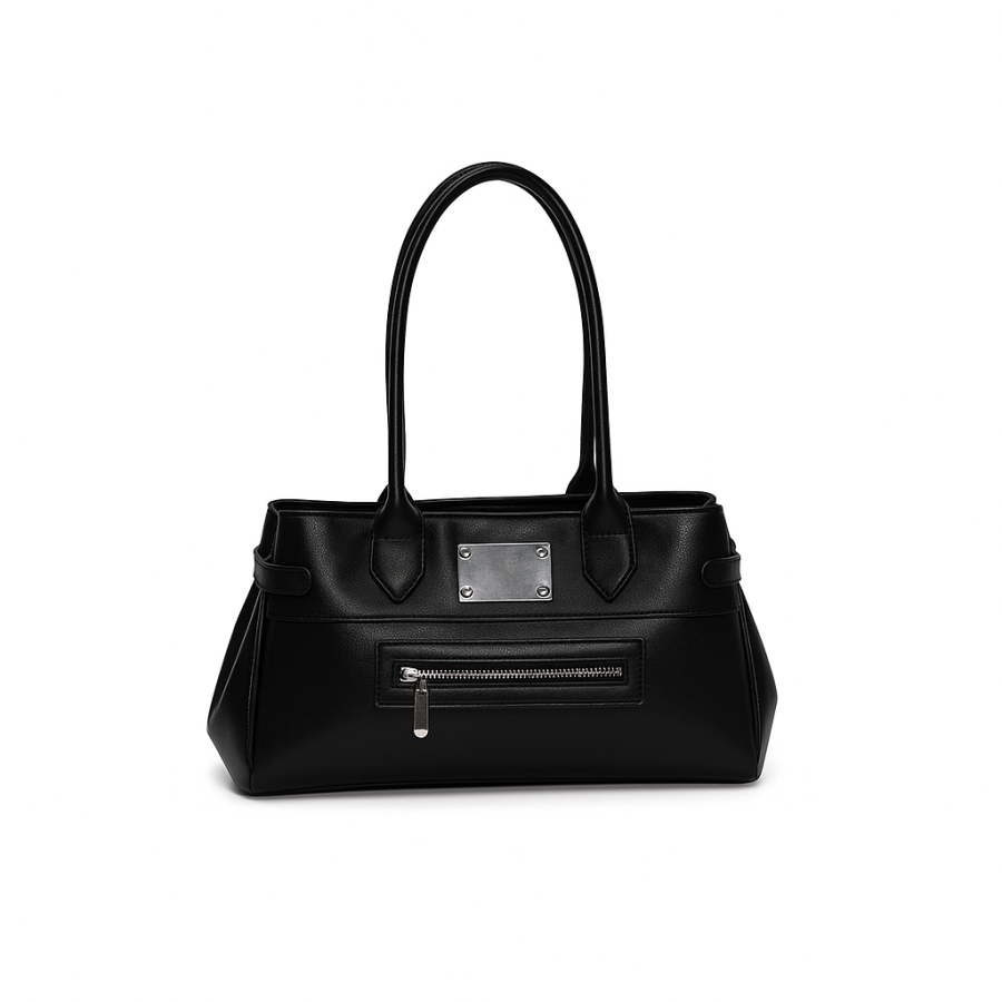 El bolso Liora destaca por su acabado brillante, asas firmes y herrajes metálicos que aportan carácter sin perder sobriedad.