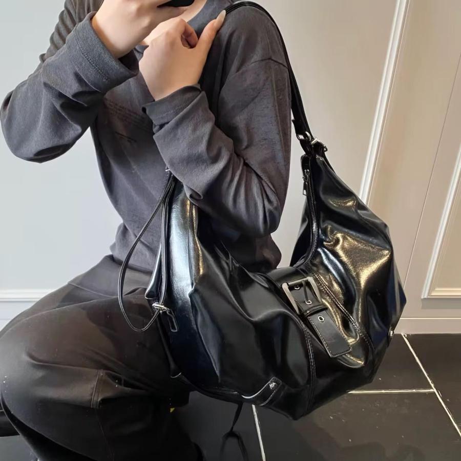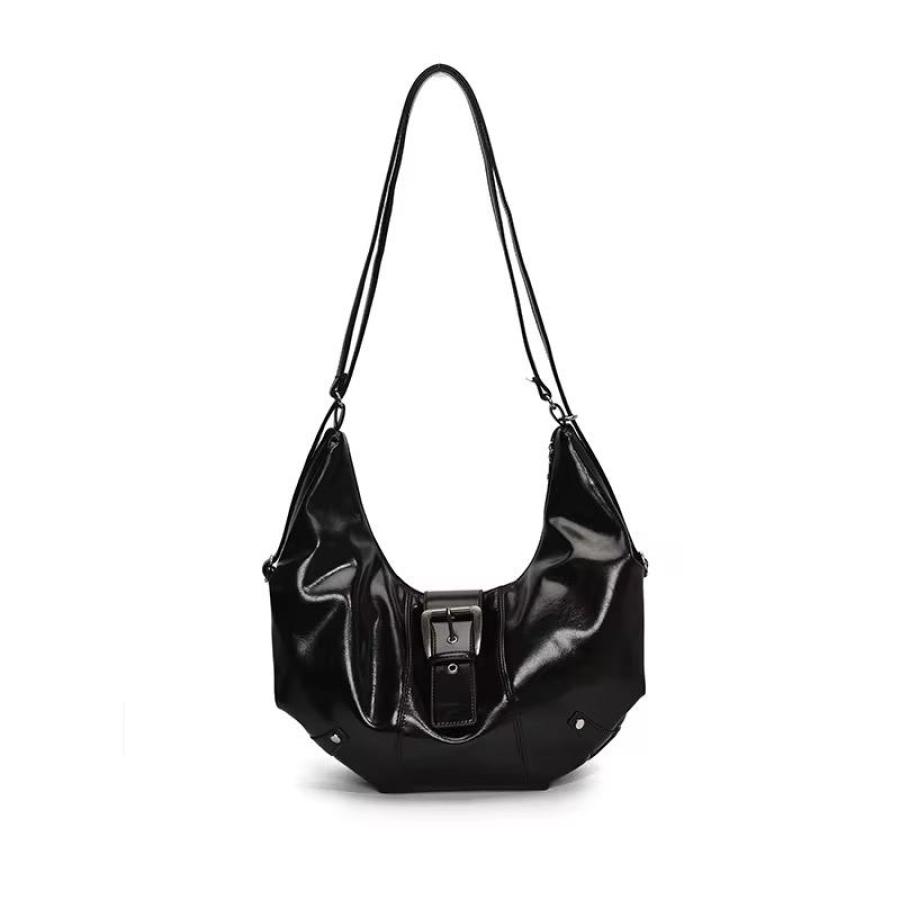Su textura brillante y su hebilla frontal lo hacen destacar sin esfuerzo, ideal para looks urbanos o de noche.