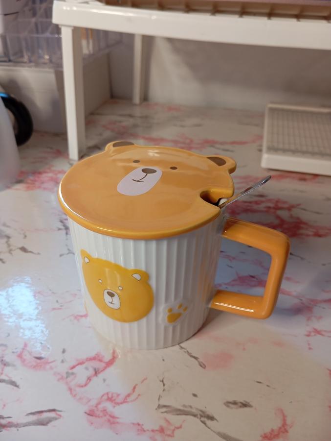 Dale un toque dulce a tus mañanas con esta adorable taza de osito en tonos blanco y amarillo pastel.