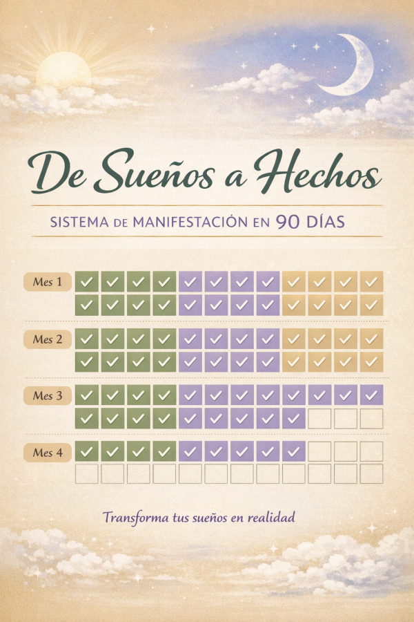 De Sueños a Hechos es un sistema digital creado para personas que creen en la espiritualidad, pero necesitan orden, claridad y acciones concretas para empezar a ver resultados reales en su vida.