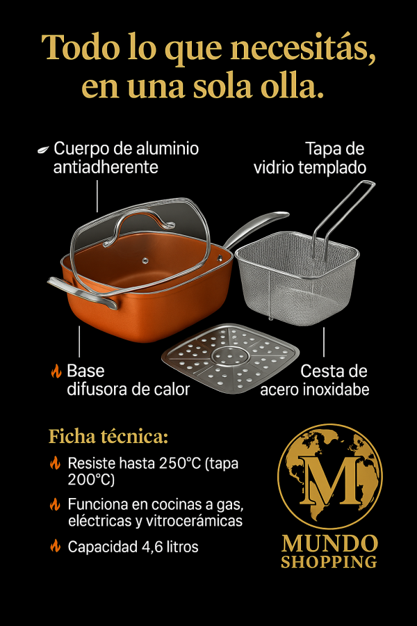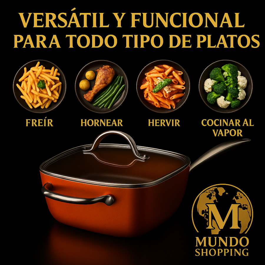 La olla cuadrada multifunción de Mundo Shopping combina diseño moderno, practicidad y durabilidad en una sola pieza.
