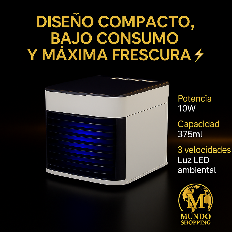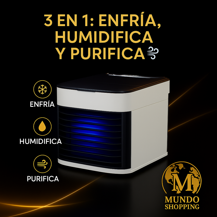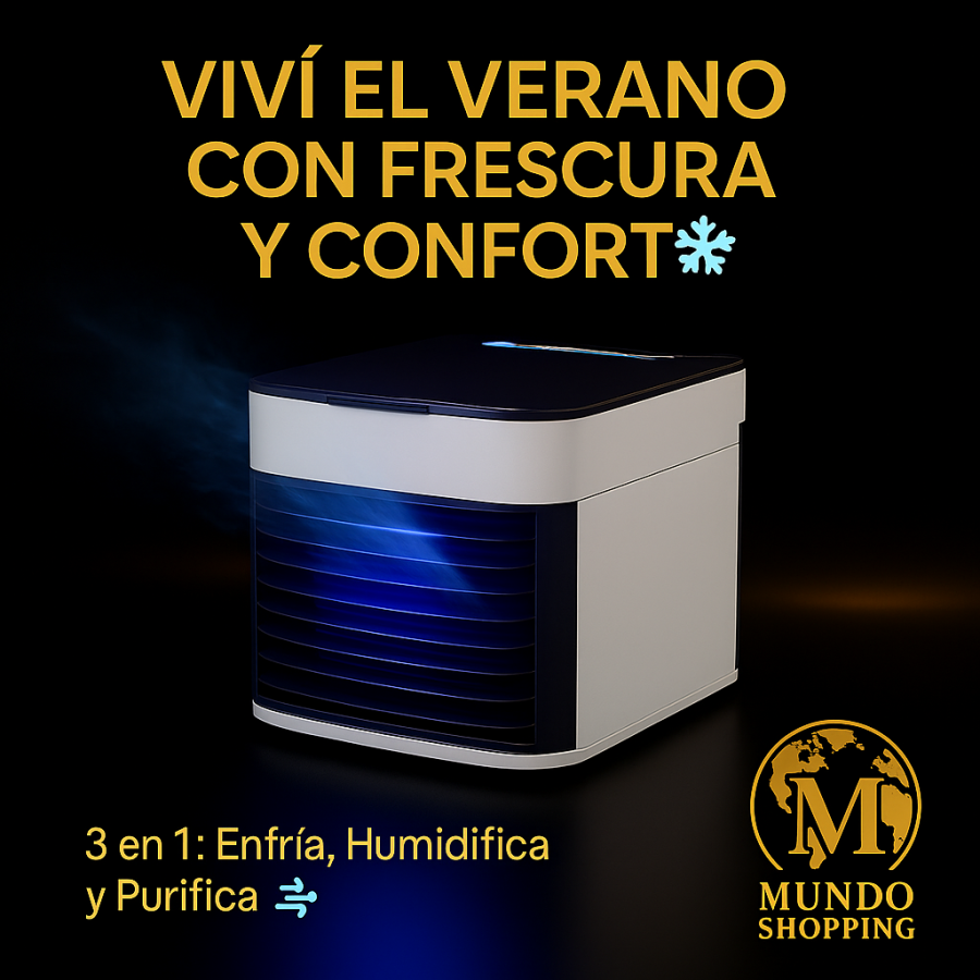 El Mini Aire Acondicionado Portátil 3 en 1 de Mundo Shopping es la solución perfecta para los días de calor.
