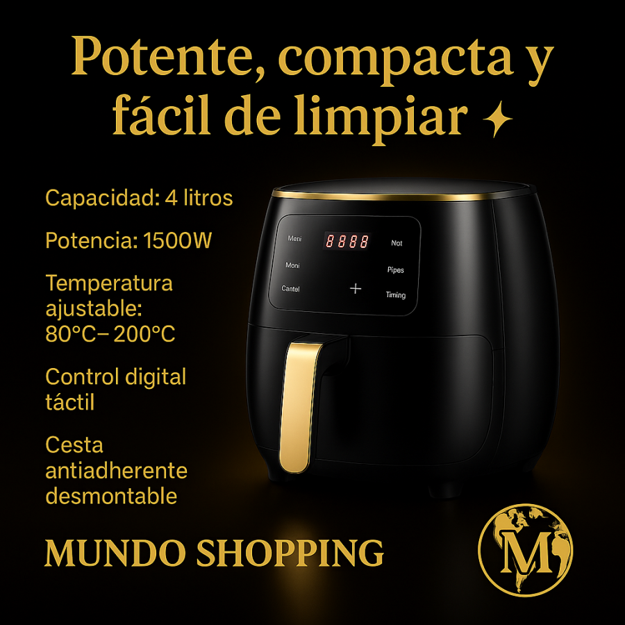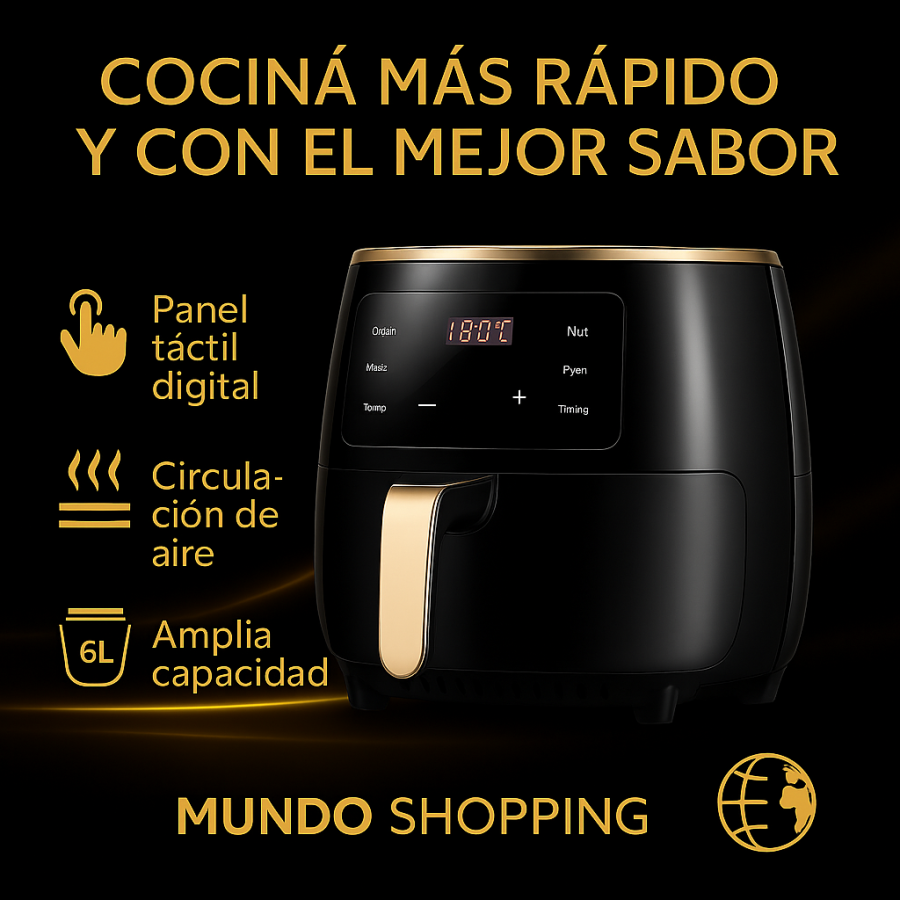 La Freidora de Aire Inteligente de Mundo Shopping te permite cocinar, hornear y recalentar con un 85% menos de grasa.