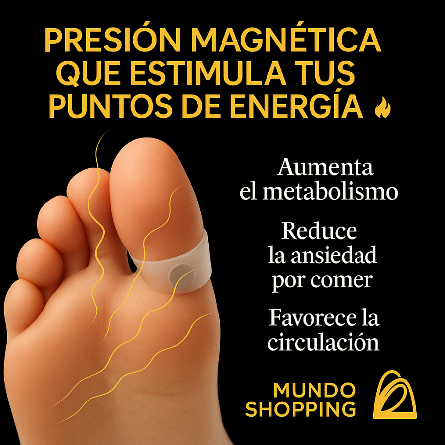 Los anillos magnéticos reductores de grasa actúan mediante acupresión, estimulando puntos energéticos clave en los pies que favorecen la circulación, el metabolismo y el equilibrio corporal.