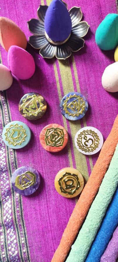 🌬️ Mix de Sahumerios: Fragancias seleccionadas para limpiar el canal energético de cada chakra.