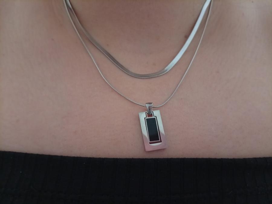 Cadena doble + dije rectángulo