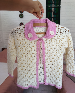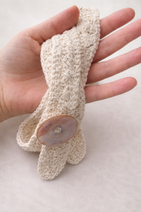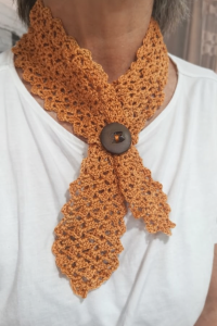 Pañuelo artesanal a crochet con botón antiguo – pieza única