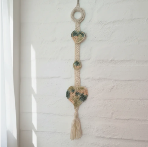 Colgante De Pared Crochet Corazones Y Borla Boho