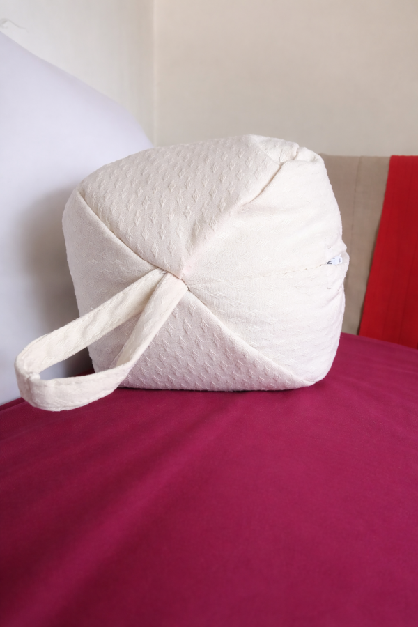 Este almohadón tipo huesito se realiza de la misma forma en que se hacía hace años en nuestra familia, utilizando telas de alta calidad provenientes de una modista profesional que trabajó durante décadas en producción textil para empresas importantes.