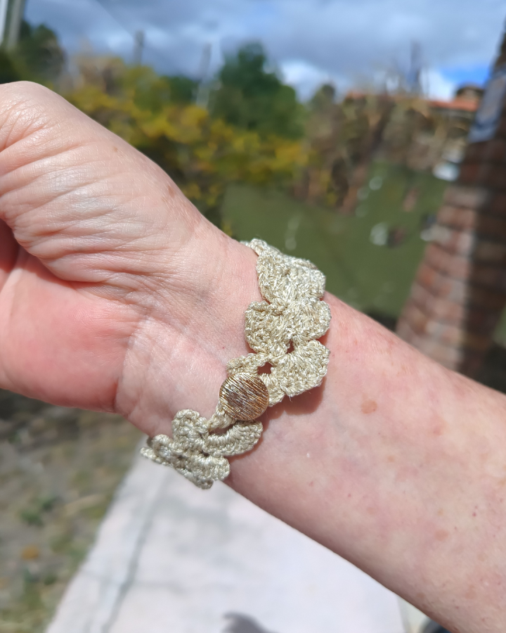 Cada pulsera está tejida lentamente, cuidando la forma, el ritmo del punto y las terminaciones.